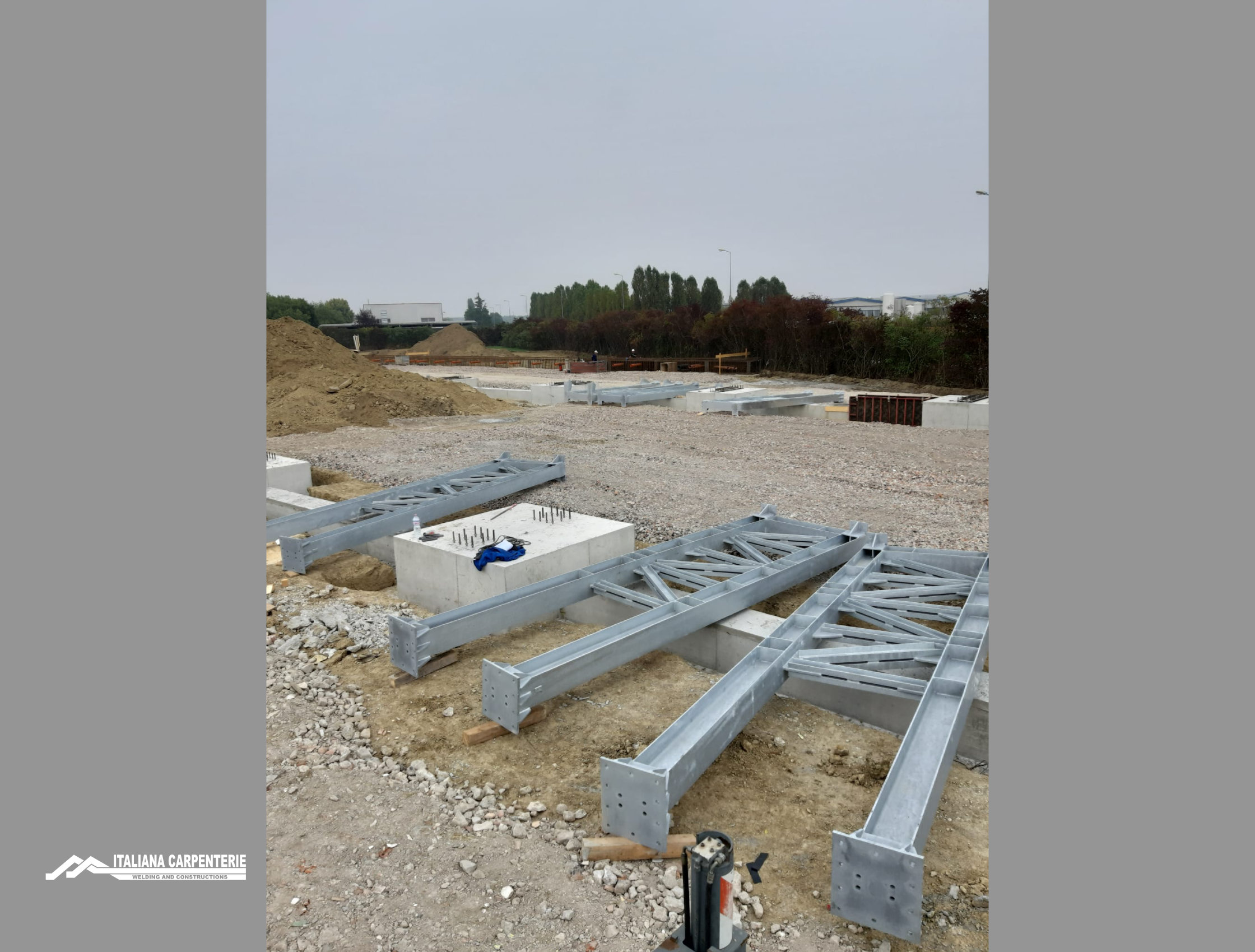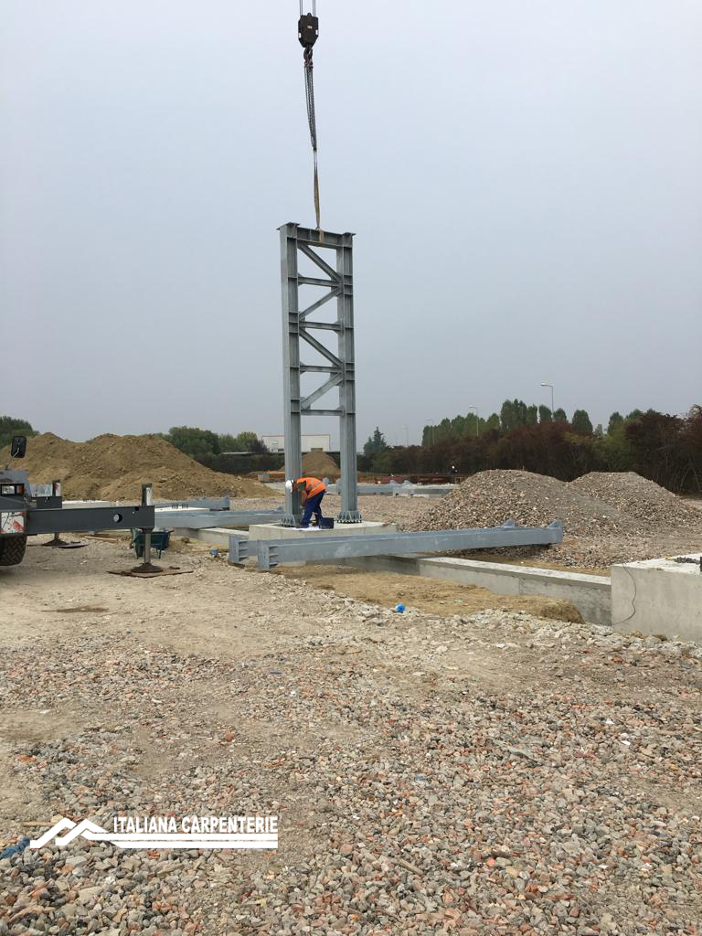 Le piastre di base delle colonne appoggiano su tirafondi zincati M24 precedentemente annegati con calcestruzzo al plinto.