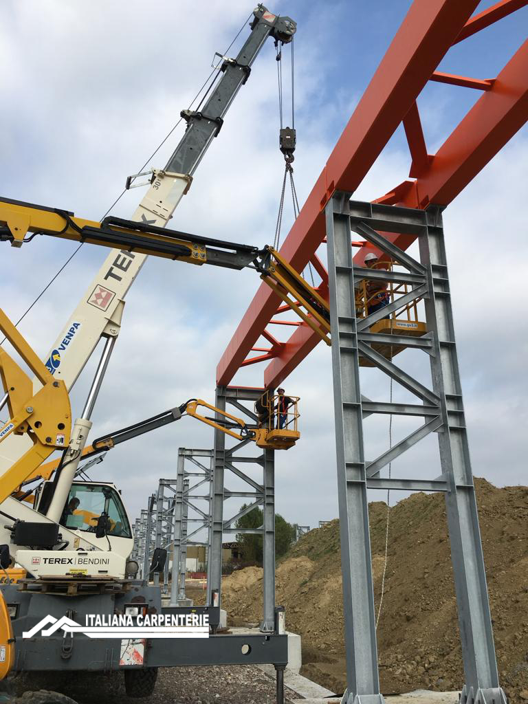 In questo progetto Italiana Carpenterie ha eseguito la costruzione ed il montaggio di colonne e vie di corsa per carroponti di portata 20 Ton. adibiti a carico/scarico di lamiere da treno di varie dimensioni e spessori.