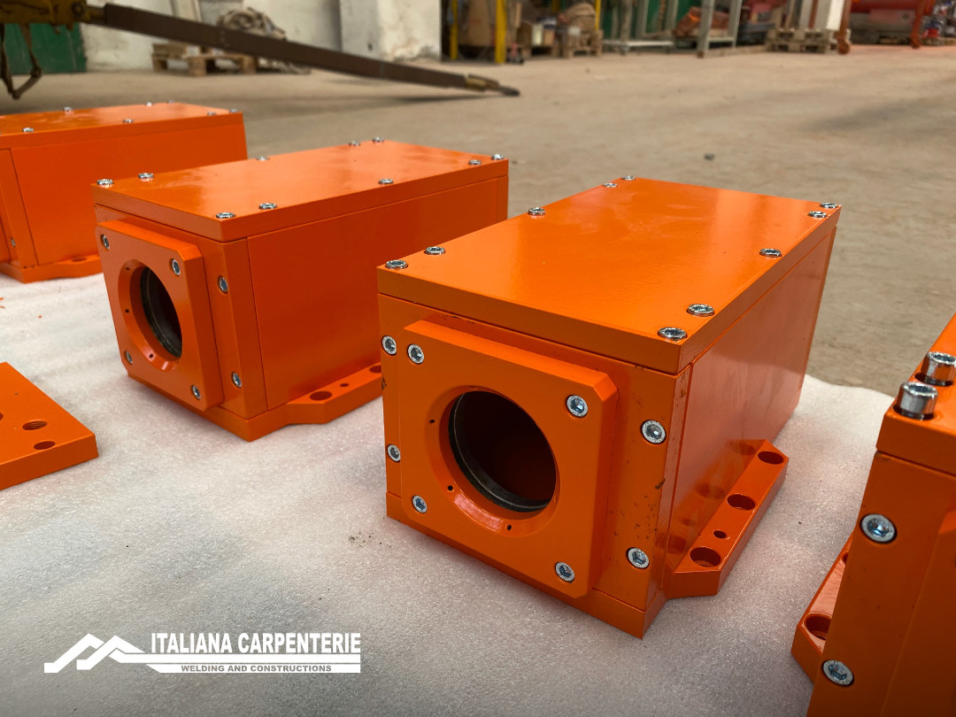 Quest’ultime sono state realizzate tramite l’assemblaggio di piastre e profili lavorati meccanicamente per garantire le tolleranze richieste, e verniciate con cicli e prodotti atti ad assicurare qualità e durabilità nel tempo.